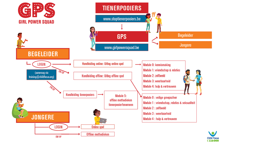 GPS biedt begeleiders van jeugdhulpvoorzieningen informatie over de dynamieken van het tienerpooierfenomeen, alsook handvaten over hoe je hier met jongeren aan de slag kan gaan. De tool heeft zowel een online als offline dimensie.